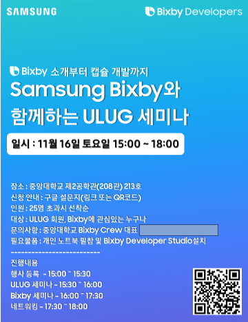 거의 첫 활동으로는 제가 다니는 중앙대학교에서 빅스비와 관련한 세미나를 개최했습니다.