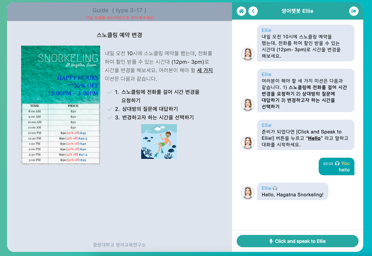 아 그리고 2019년 9월쯤부터 영어 교육과 연구실에서 진행하던 영어 교육 관련 챗봇이 거의 완성단계에 이르렀습니다.