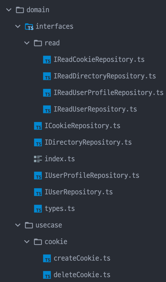 ㄴ interfaces: datagateway에 대한 인터페이스들을 정의해놓은 곳. DTO에 대한 인터페이스들을 정의해놓음.