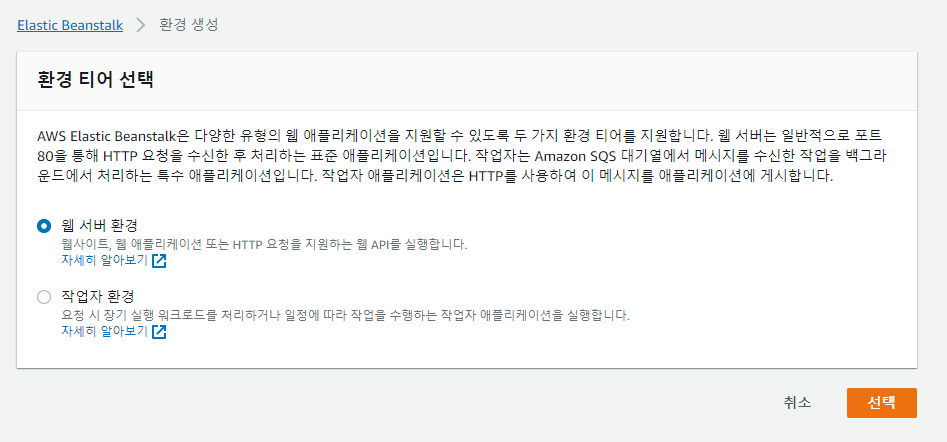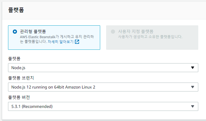 Github Action을 설정해주기 전에, AWS Elastic Beanstalk에 환경 설정을 해줘야 한다.