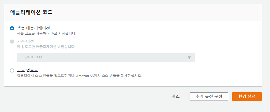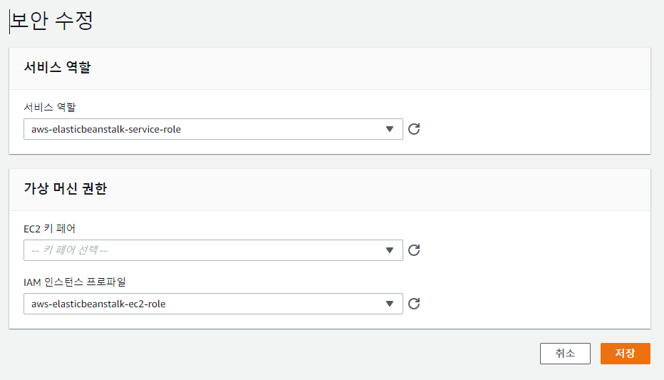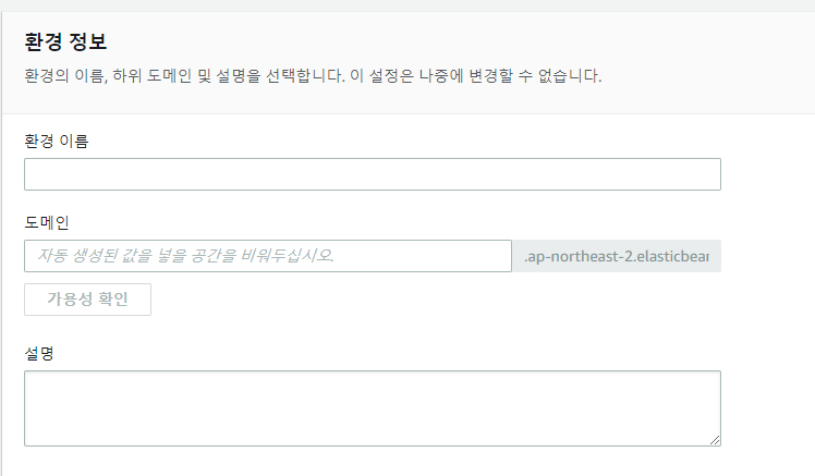 - Name : AWS_REGION value : Elastic Beanstalk가 있는 리전