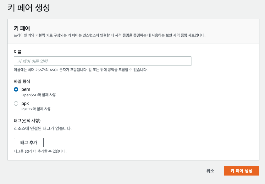 키 페어 이름을 적어주고 생성하면 끝!