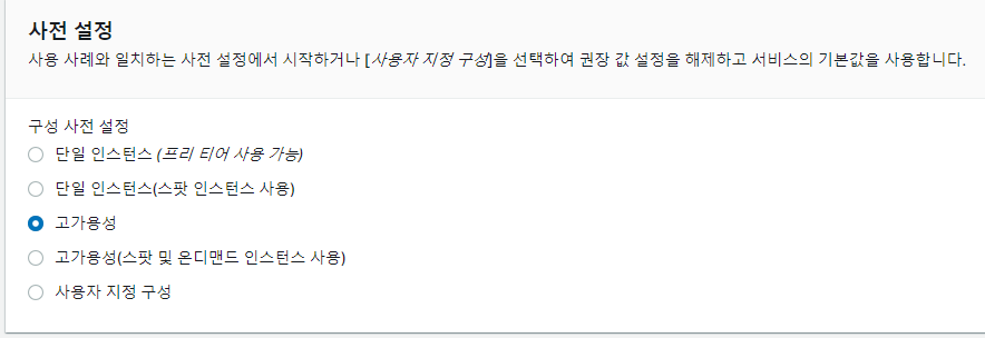 꼭! 고가용성을 선택해주자.