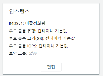 여기서 편집을 누르면 인스턴스의 보안그룹을 설정할 수 있다.