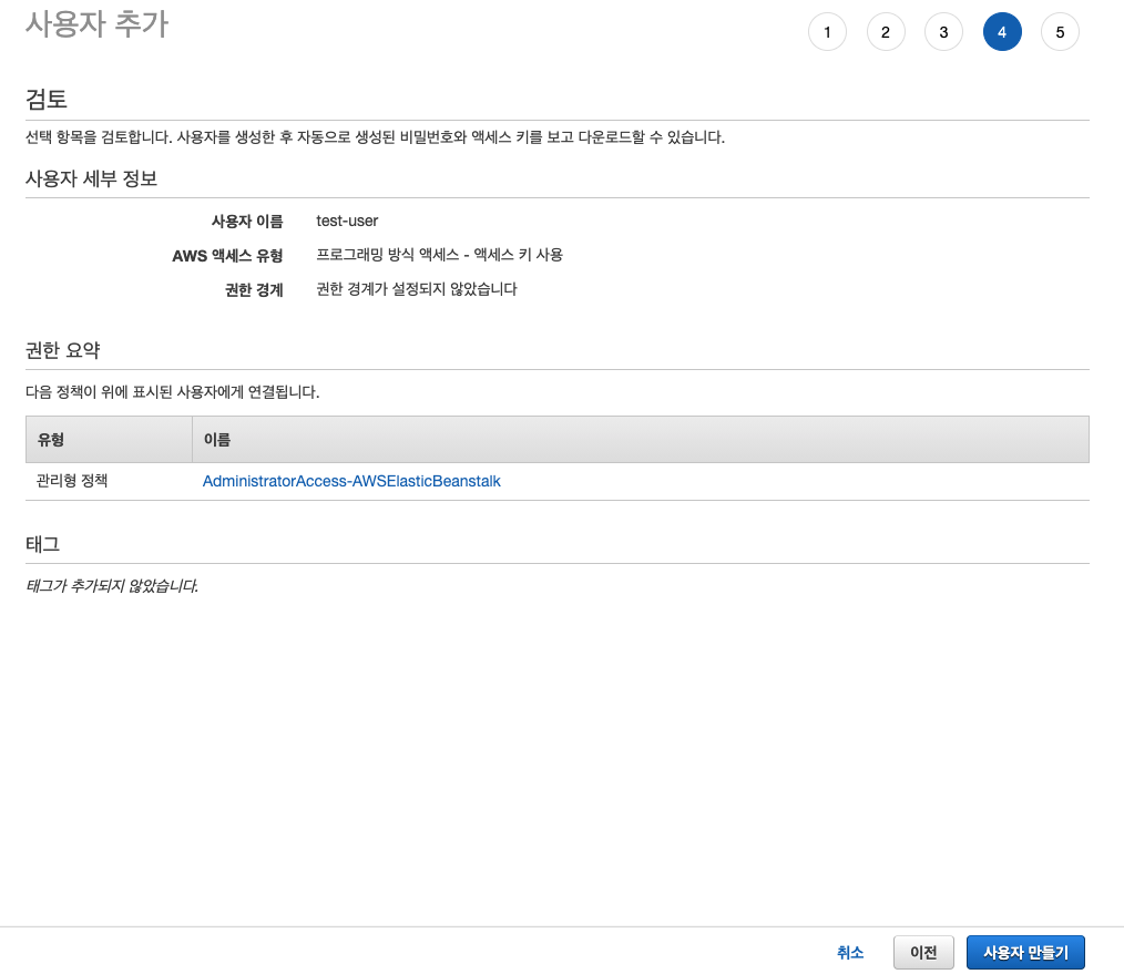 하지만 그 전에, Github Action에서 ElasticBeanstalk에 접근할 수 있는 권한을 가진 유저가 필요하다.