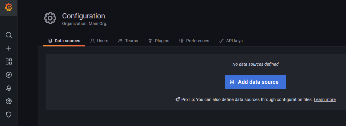 1. Grafana에서 Configuration에 들어가서 Add datasource 버튼을 클릭한다.