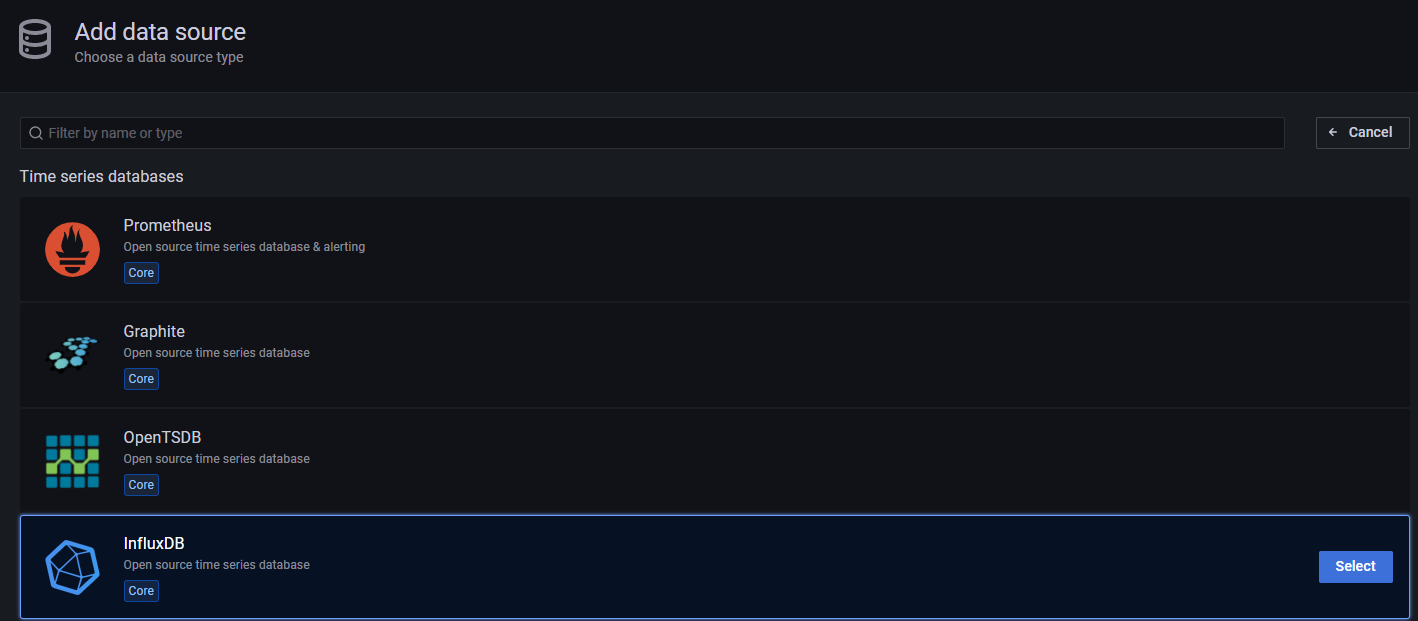 2. 인플럭스 DB 선택